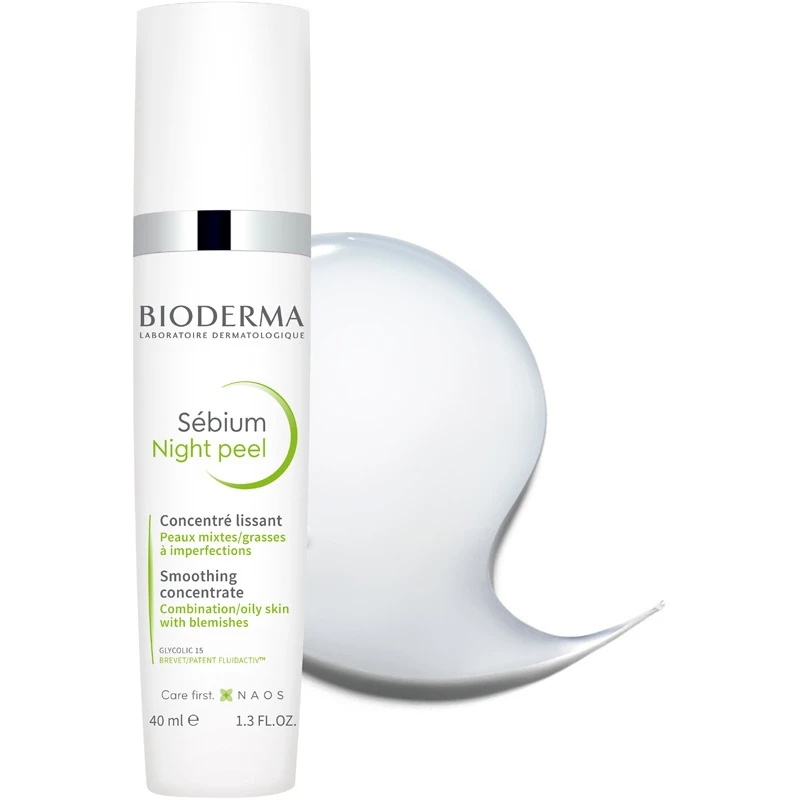 Bioderma Sébium Night Peel er en eksfolierende natcreme, som er udviklet til en kombineret eller fedtet hud med urenheder. Den er beriget med en skånsom og effektiv formel, som hjælper med at forbedre den urene huds udseende, tekstur og udstråling. Den indeholder 15% glycolsyre, som er en AHA-syre, der giver huden en blid peeling, der reducerer urenheder og synligheden af ar, udglatter hudstrukturen og bekæmper en trist og ujævn hudtone.