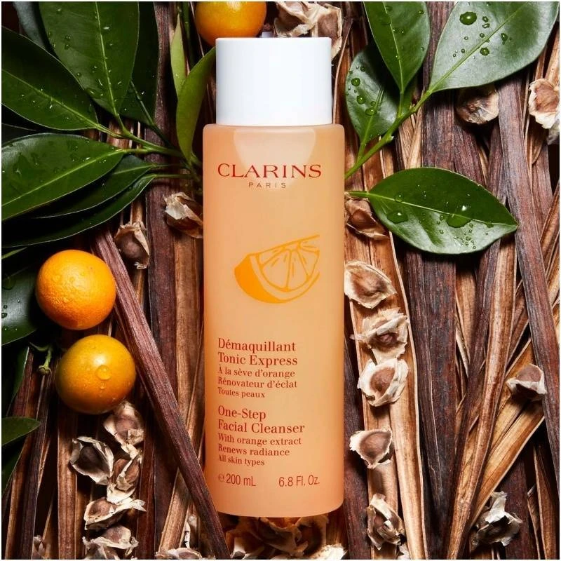 Clarins One-Step Facial Cleanser For All Skin Types indeholder ekstrakt af monringa-frø, som neutraliserer urenheder, renser huden og genskaber hudens naturlige udstråling. Desuden indeholder den appelsinekstrakt, der opfrisker, stimulerer og revitaliserer huden.