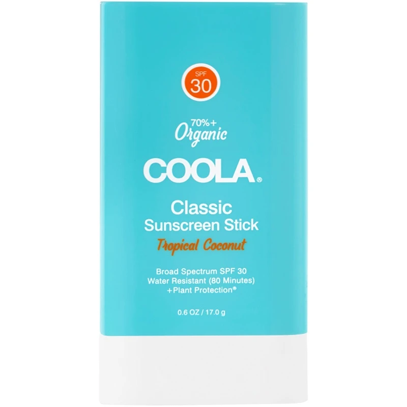 COOLA Classic Sunscreen Stick Tropical Coconut SPF 30 er udviklet med en formel med mere end 70 % økologisk certificerede ingredienser, hvor et antioxidantrigt plantekompleks bekæmper frie radikaler og giver huden næring. Den har en meget let tekstur, som absorberes hurtigt, og efterlader ikke huden med en fedtet overflade. Til gengæld forkæler den huden en naturlig, sommerlig duft af tropisk kokos.
