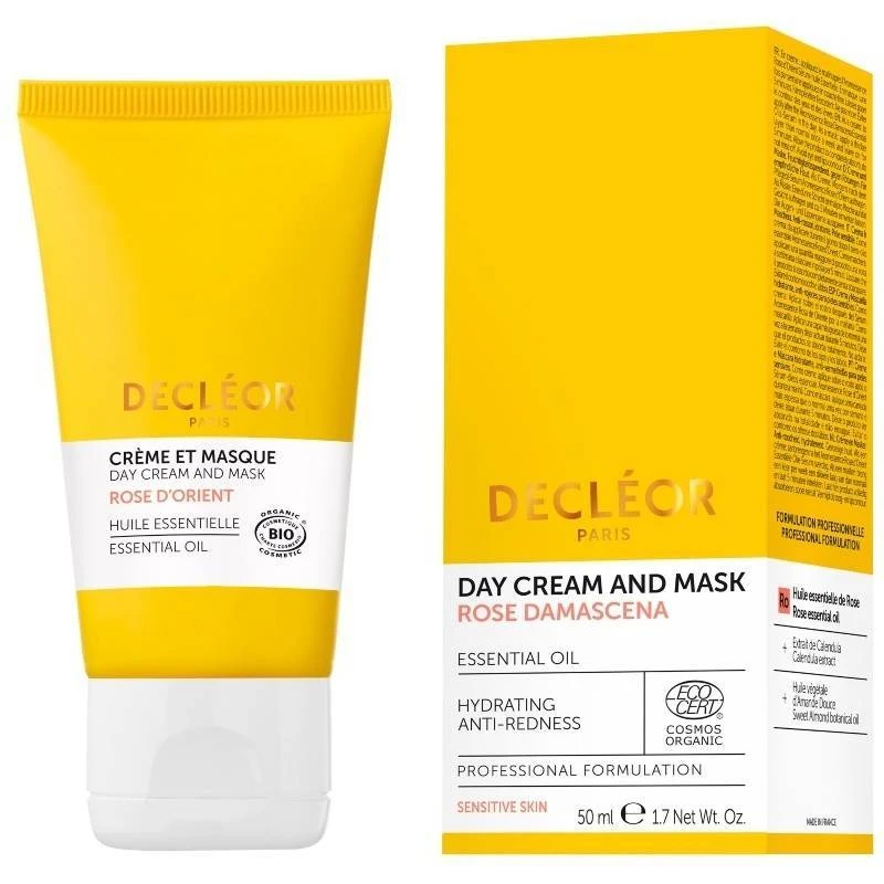 Decléor Rose Damascena Day Cream And Masker et produkt, som er specielt udviklet til en sensitiv hud. Den kan bruges både som creme og maske, og er et uundværligt produkt, hvis man har en hud, som har tendens til rødme, ubehag og stramhed i ansigtet. Den er beriget med æterisk olie af rose, som bidrager til den skønne duft, mens planteolie fra sød mandel og Centella Asiatica ekstrakt har en beroligende virkning, som modvirker og dæmper rødme i huden, og som er med til at skabe mere balance i huden. Cremen absorberes hurtigt i huden, og efterlader dig med en skøn følelse af velbehag.
