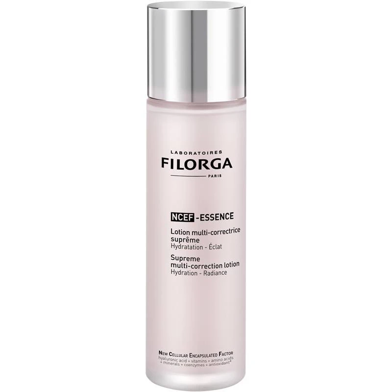 Filorga NCEF-Essence er en lækker, multikorrigerende og fugtgivende lotion, som forbedrer hudens kvalitet og udstråling. Den påføres huden som det første trin efter din renserutine, ligesom en toner, og forbereder huden til den efterfølgende hudpleje, så man opnår optimal effekt af disse produkter.