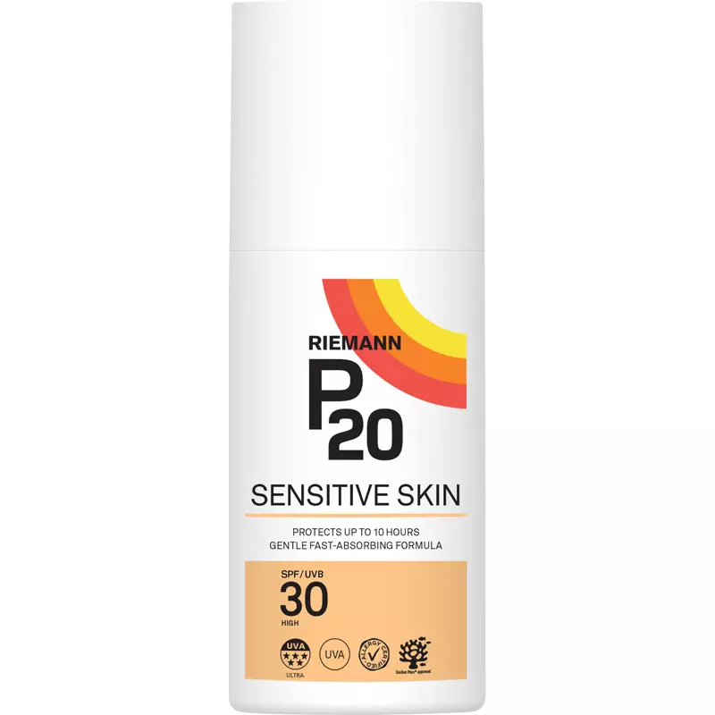 P20 Riemann Sensitive Skin Sun Protection Cream SPF 30 er udviklet med en skånsom formel, som er både AllergyCertified, parfumefri, vegansk og dermatologisk testet til sensitiv hud. Derudover er formlen EcoSun Pass godkendt, hvilket vil sige, at de anvendte solfiltre ikke skader koralrev eller virker hormonforstyrrende.