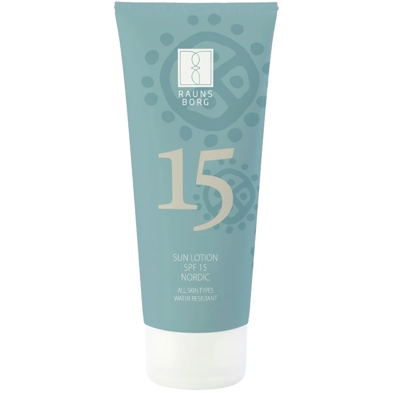 Raunsborg Sun Lotion SPF 15 er en sollotion med medium beskyttelse, som beskytter mod UVA og UVB stråler. Den har en frisk og naturlig duft af birk og agurk. Raunsborg Sun Lotion indeholder bl.a. blåbær, som er kendt for sin beroligende virkning og havtorn, der har et højt indhold af C-vitamin. Raunsborg er en skønhedsserie inspireret af rigdommene i den nordiske natur. Ved at gå på opdagelse i flere hundrede år gamle bøger om nordiske urter, har Raunsborg fundet effektive egenskaber til deres hudplejeprodukter, der er som skabt for den sarte, nordiske teint.